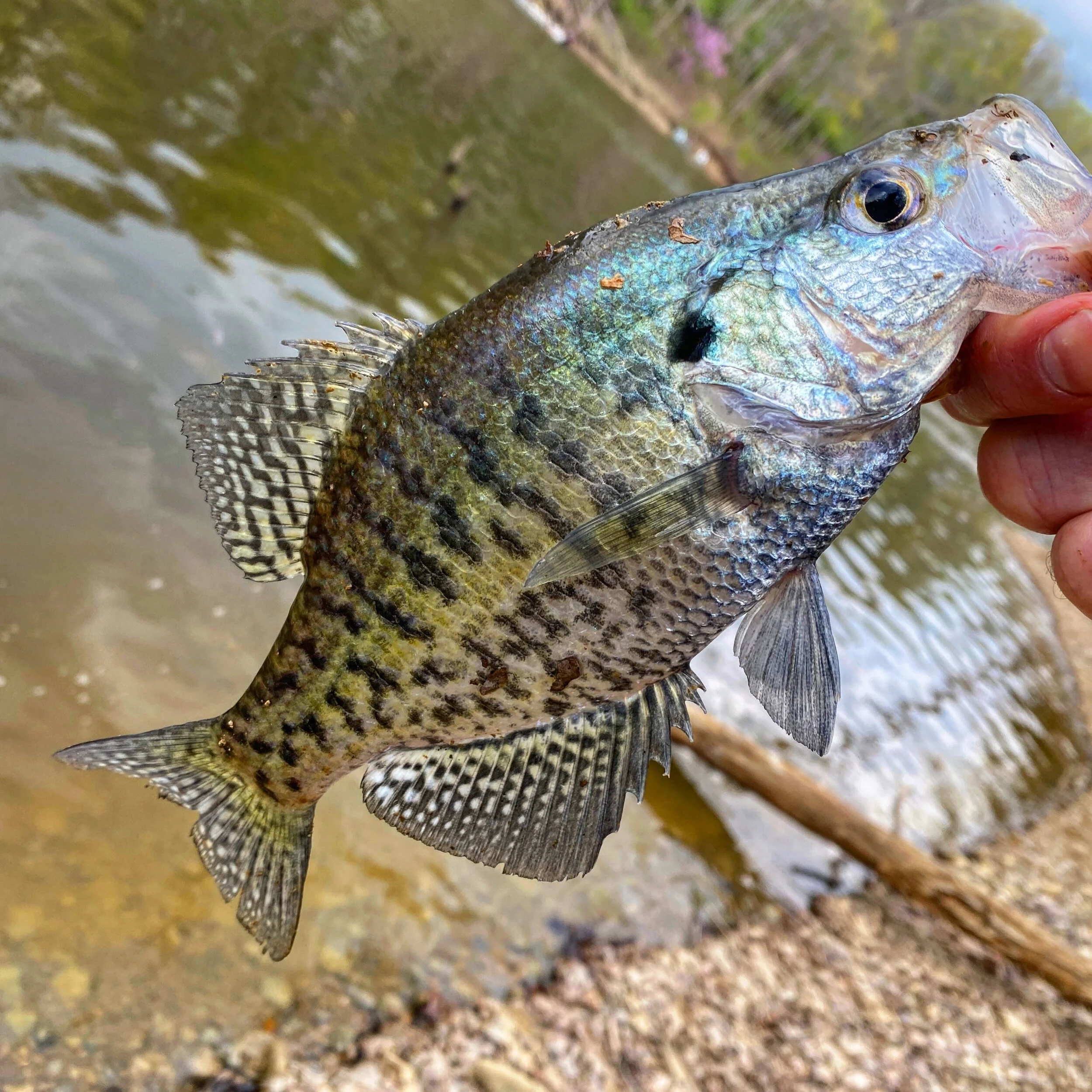 Hard to believe it snowed the following day but I was able to get out to East Fork Lake and enjoy some excellent shore fishing. I noticed an access point on the last hike and promised myself to come back with my pole and check it out. There’s a bit of scrambling involved following the shoreline but it’s well worth the effort climbing over logs and slipping through mud to get into the shallows where crappie and bass are always hanging out. Hiking with fishing gear can be a challenge but it turns out that fishing poles, after breaking them down, will fit right into the trekking pole loop of my daypack so getting to shore was easy as both hands were free.