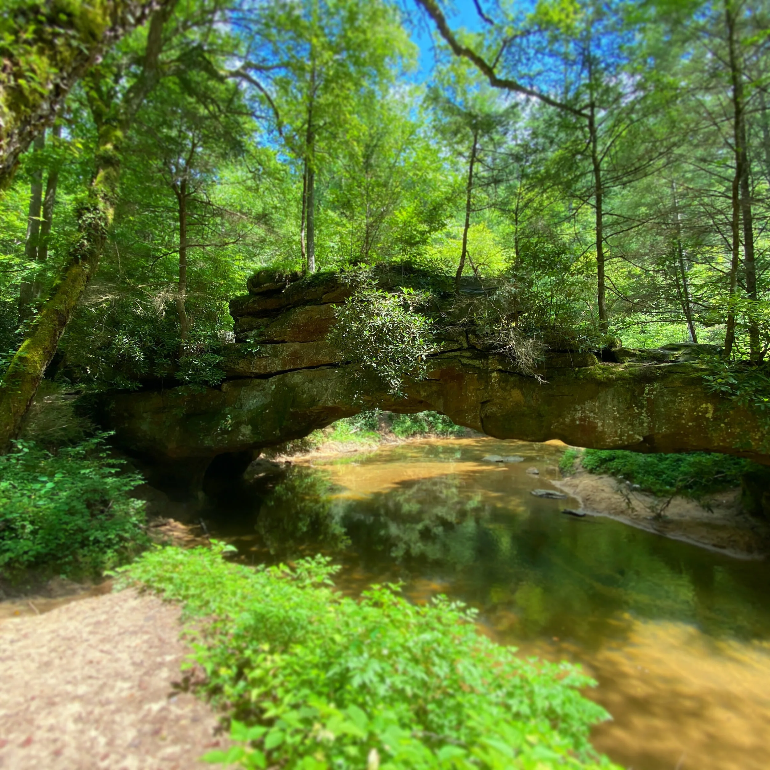 After arriving for a long weekend of camping and off-roading, I met up with a group of fellow event attendees and did a short hike down to see Rock Bridge and then Creation Falls. It was a hot and humid day with lots of sun, so a hike to a refreshing waterfall was definitely in order. I wasn’t sure if we’d have time for hiking while I was down here, so I was stoked to get out and see the sights. It had rained earlier in the day so Creation Falls was flowing with plenty of cool clear water and was being enjoyed by a group of kids building sandcastles.